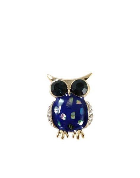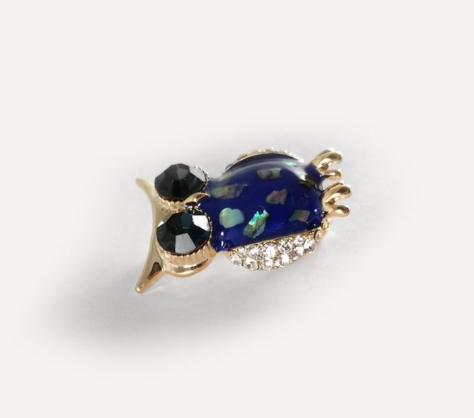 (АРТИКУЛ: 6505/11) БРОШКА ЖЕНСКАЯ "СОВА", НЕБОЛЬШАЯ, В ЗОЛОТИСТО-синих ТОНАХ, МЕТАЛЛ , СТРАЗЫ, ПЕРЛАМУТР, ЭМАЛЬ