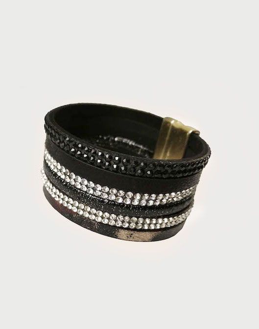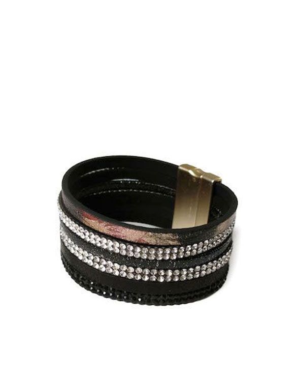 (АРТИКУЛ: 6528/61) БРАСЛЕТ ЖЕНСКИЙ, КОЖА, МЕЛКИЕ СТРАЗЫ, В ЧЕРНЫХ ТОНАХ, НА МАГНИТЕ