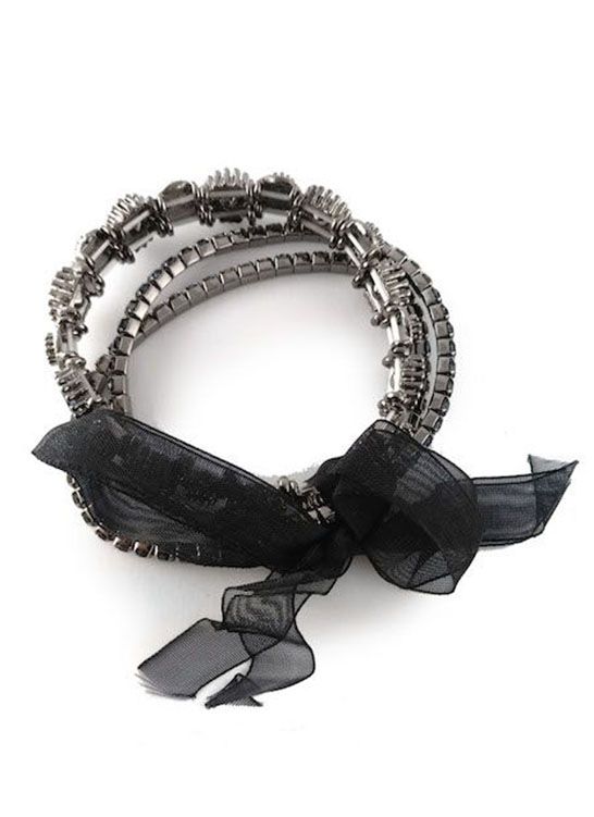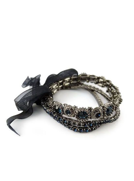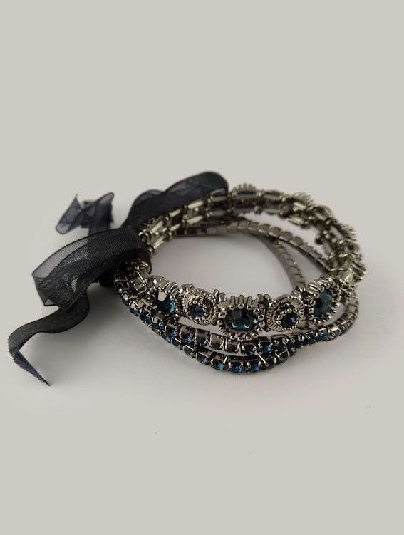 (АРТИКУЛ: 6554/55) БРАСЛЕТ ЖЕНСКИЙ, БЕЛЫЙ МЕТАЛЛ, СИНИЕ СТРАЗЫ, ЧЕРНАЯ ЛЕНТА