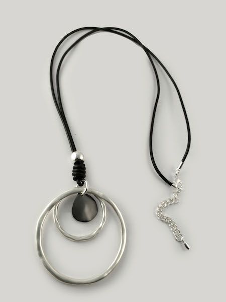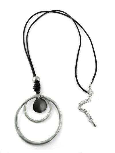 (АРТИКУЛ: 6558/91) КОЛЬЕ ЖЕНСКОЕ, КРУПНАЯ ПОДВЕСКА ИЗ БЕЛОГО МЕТАЛЛА с черным, НА ДЛИННОМ ЧЕРНОМ ШНУРКЕ