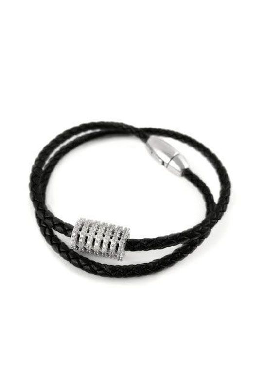 (АРТИКУЛ: 6573/42) БРАСЛЕТ ЖЕНСКИЙ, КОЖА, МЕТАЛЛ "БЕЛОЕ ЗОЛОТО", МЕЛКИЕ СТРАЗЫ, НА МАГНИТЕ
