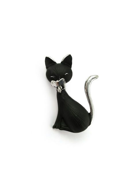 (АРТИКУЛ: 6612/41) БРОШКА ЖЕНСКАЯ "КОШКА", среднего размера, ЧЕРНАЯ ЭМАЛЬ, МЕТАЛЛ "СЕРЕБРО"