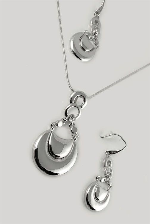 (АРТИКУЛ: 6719/П) КОМПЛЕКТ ЖЕНСКИЙ (КОЛЬЕ + СЕРЬГИ), ЦВЕТ "СЕРЕБРО"