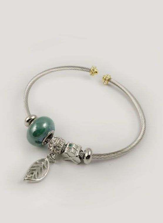 (АРТИКУЛ: 6795/02) БРАСЛЕТ ЖЕНСКИЙ, ИЗ БЕЛОГО МЕТАЛЛА С "ЗОЛОТОМ", БЛЕДНО-ЗЕЛЕНОЕ СТЕКЛО, СТРАЗЫ