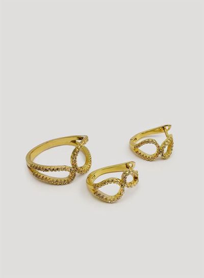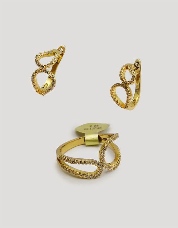 (АРТИКУЛ: 6832/02) ОМПЛЕКТ ЖЕНСКИЙ (СЕРЬГИ+КОЛЬЦО), МЕТАЛЛ "ЗОЛОТО", СТРАЗЫ