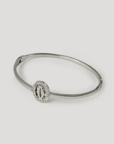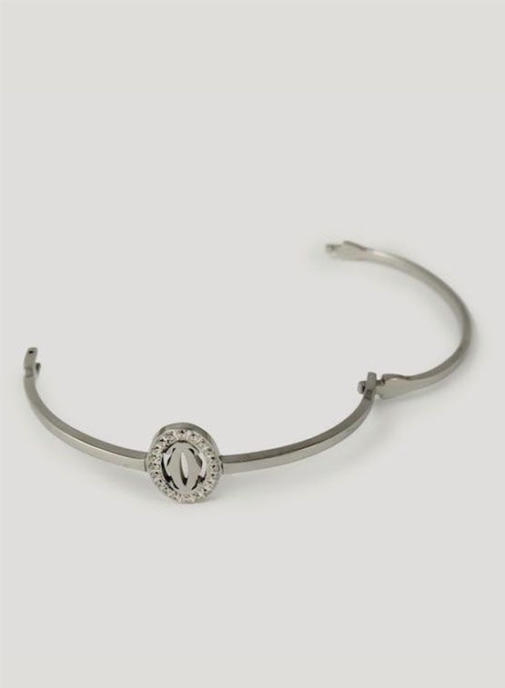 (АРТИКУЛ: 7072/03) БРАСЛЕТ ЖЕНСКИЙ, ИЗ СЕРЕБРИСТОГО МЕТАЛЛА, ТОНКИЙ, ОВАЛЬНЫЙ ЭЛЕМЕНТ С МЕЛКИМИ СТРАЗАМИ