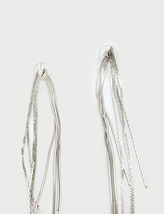 (АРТИКУЛ: 7260/12) СЕРЬГИ ЖЕНСКИЕ, ДЛИННЫЕ, В ВИДЕ ЦЕПОЧЕК, МЕТАЛЛ, ЦВЕТ "БЕЛОЕ ЗОЛОТО"