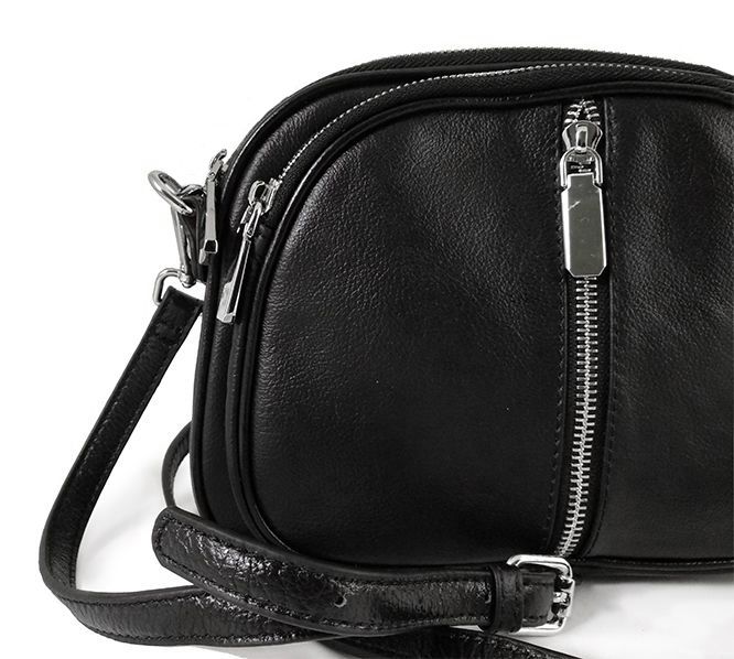 (АРТИКУЛ: 7865/1/02) СУМКА ЖЕНСКАЯ НЕБОЛЬШАЯ, НАТУРАЛЬНАЯ КОЖА, ЧЕРНАЯ , ТРИ ОТДЕЛЕНИЯ, С ДЕКОРАТИВНОЙ МОЛНИЕЙ, ДЛИННЫЙ РЕМЕНЬ ЧЕРЕЗ ПЛЕЧО