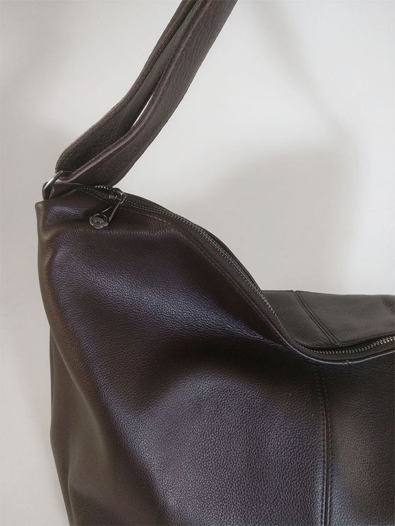 (АРТИКУЛ: 7927/1/82) СУМКА МЕШОК ЖЕНСКАЯ, БОЛЬШАЯ, НАТУРАЛЬНАЯ КОЖА, TEМНО-КОРИЧНЕВАЯ, ШИРОКИЙ РЕМЕНЬ ЧЕРЕЗ ПЛЕЧО