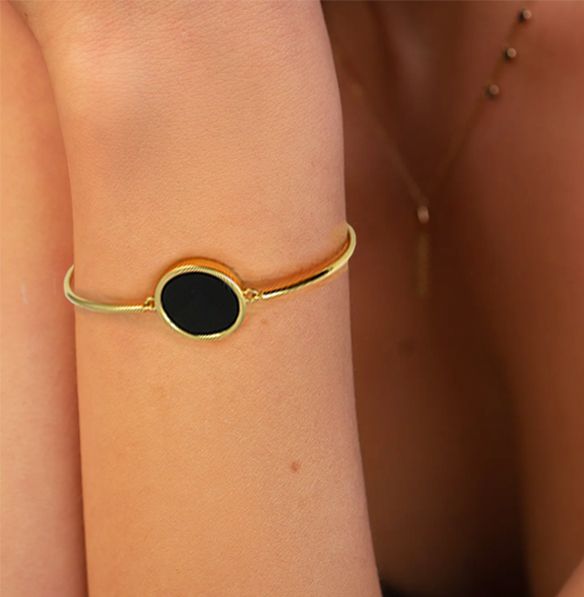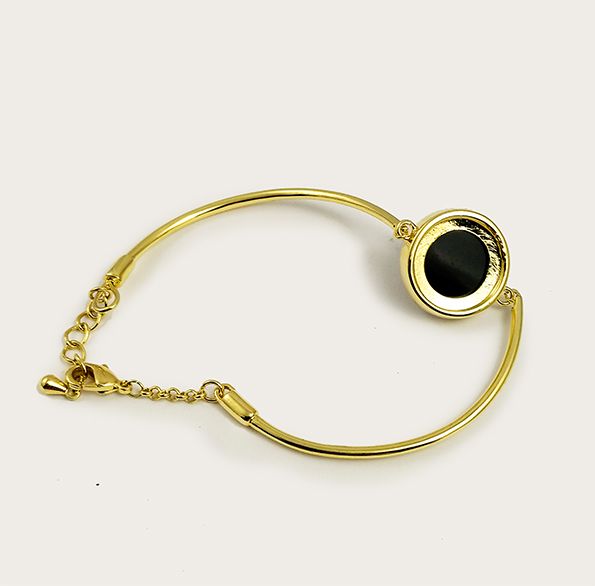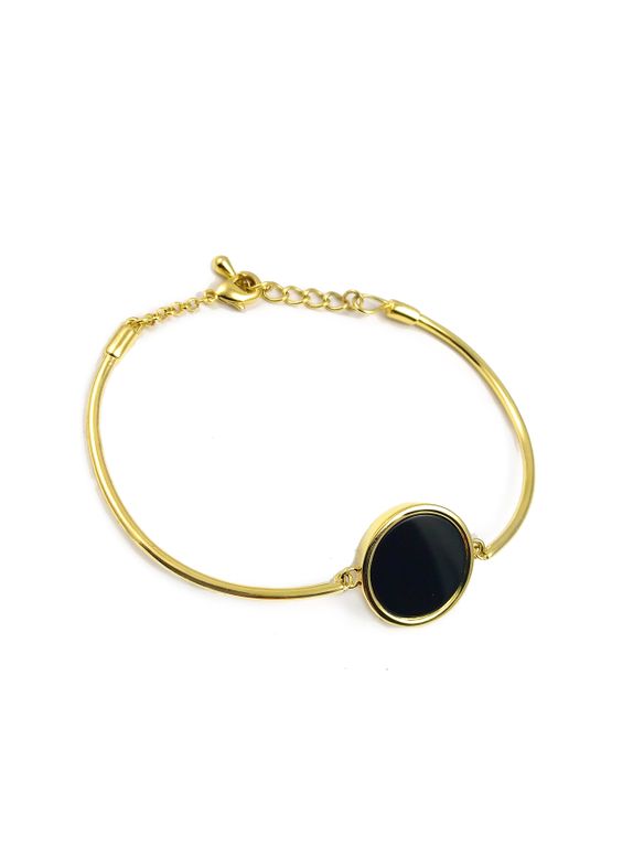 (АРТИКУЛ: 8212/63) БРАСЛЕТ ЖЕНСКИЙ, МЕТАЛЛ, ЗОЛОТИСТЫЙ, С ЧЕРНОЙ МАТОВОЙ ВСТАВКОЙ