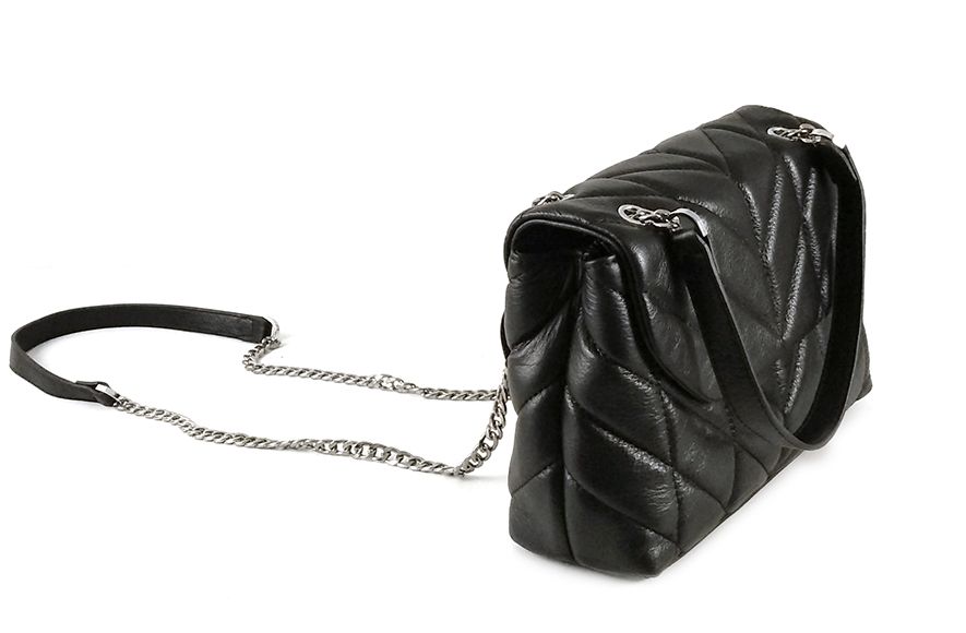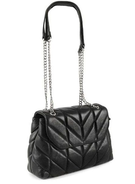 (АРТИКУЛ: 8355/1) СУМКА ЖЕНСКАЯ, НЕБОЛЬШАЯ, НАТУРАЛЬНАЯ КОЖА, ЧЕРНАЯ, ПЕРЕТЯГИВАЮЩАЯСЯ ЦЕПОЧКА ЧЕРЕЗ ПЛЕЧО