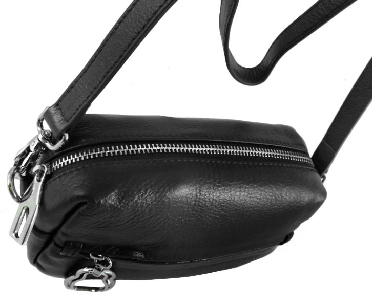(АРТИКУЛ: 8399/0/81) СУМКА ЖЕНСКАЯ, МАЛЕНЬКАЯ, НАТУРАЛЬНАЯ КОЖА, ЧЕРНАЯ, С НАРУЖНЫМИ КАРМАНАМИ, С ПЛЕЧЕВЫМ РЕМНЕМ