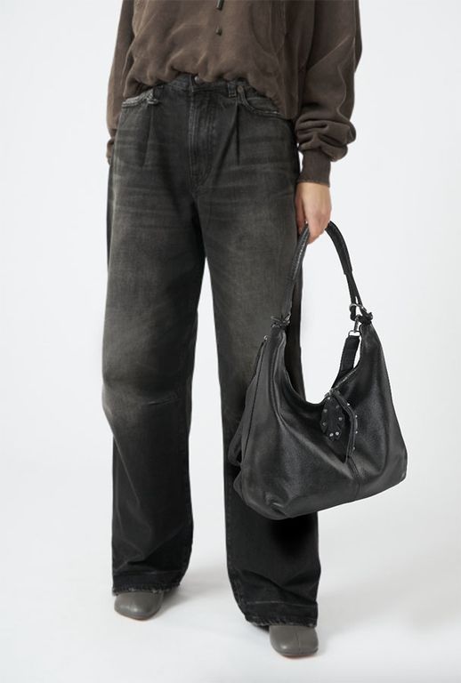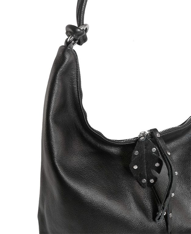 (АРТИКУЛ: 8403/1) СУМКА МЕШОК, СРЕДНЕГО РАЗМЕРА, НАТУРАЛЬНАЯ КОЖА, ЧЕРНАЯ, ЧЕРЕЗ ПЛЕЧО