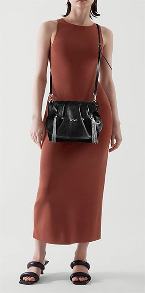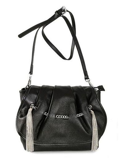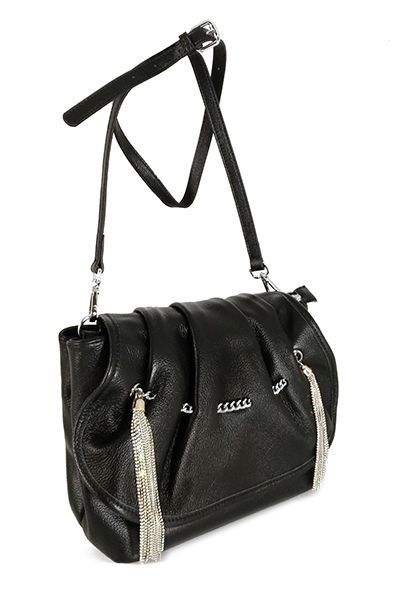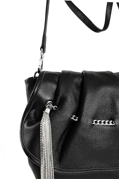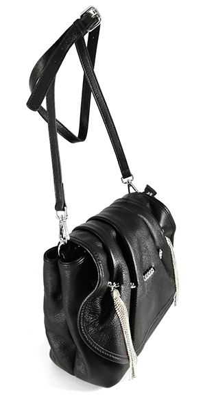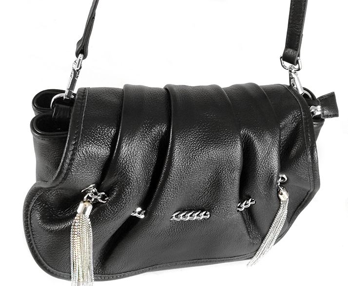 (АРТИКУЛ: 8475) СУМКА ЖЕНСКАЯ НЕБОЛЬШАЯ, НАТУРАЛЬНАЯ КОЖА,ЧЕРНАЯ, С ПОДВЕСКАМИ ИЗ МЕТАЛЛИЧЕСКИХ БУСИН И СРТАЗ, РЕМЕНЬ ЧЕРЕЗ ПЛЕЧО