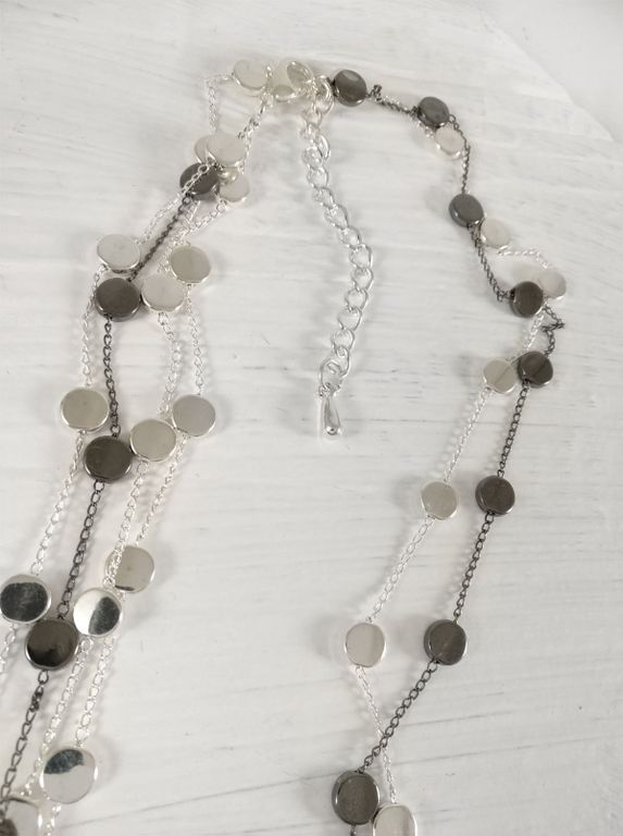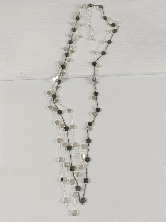 (АРТИКУЛ: 8544/03) УКРАШЕНИЕ ЖЕНСКОЕ, ДЛИННОЕ, СОТУАР, ЦВЕТ "СЕРЕБРО", С СЕРЫМИ ПЛОСКИМИ БУСИНАМИ