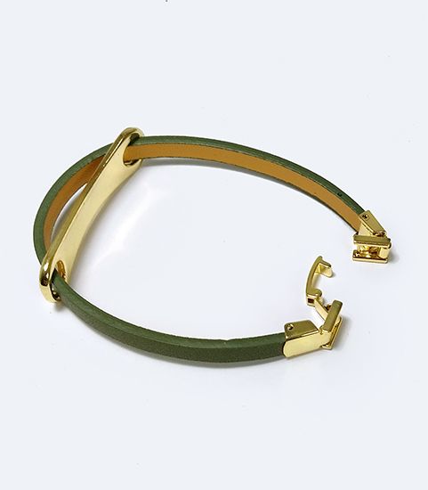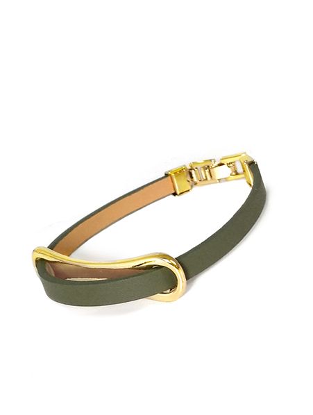 (АРТИКУЛ: 8585/44) БРАСЛЕТ ЖЕНСКИЙ, ЗЕЛЕНАЯ "БОЛОТНАЯ" КОЖА, МЕТАЛЛ "ЗОЛОТО"