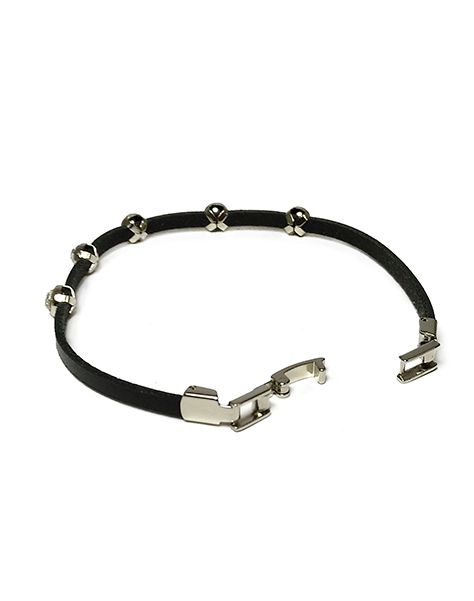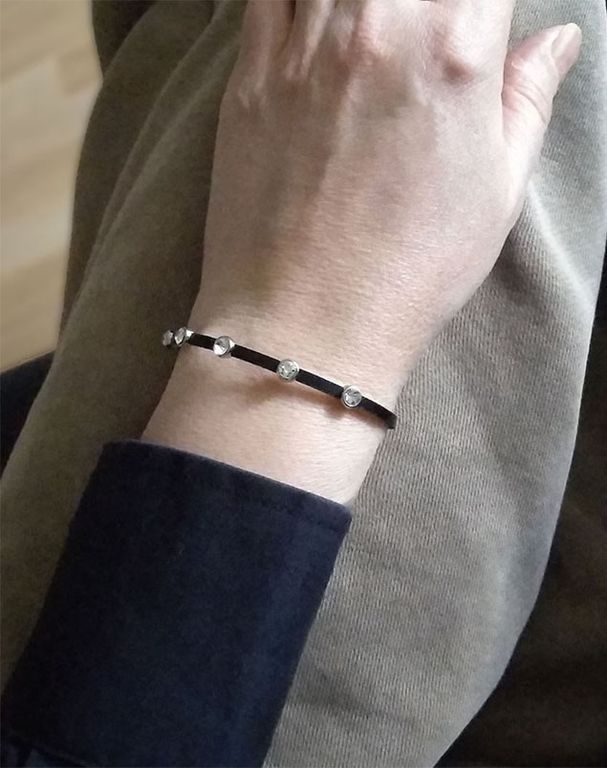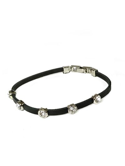 (АРТИКУЛ: 8597/22) БРАСЛЕТ ЖЕНСКИЙ, ЧЕРНАЯ КОЖА, БЕЛЫЙ МЕТАЛЛ, БЕЛЫЕ СТРАЗЫ