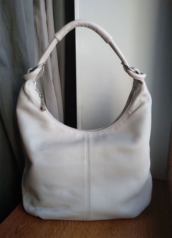 (АРТИКУЛ: 8618/1/7) СУМКА МЕШОК, БОЛЬШАЯ, НАТУРАЛЬНАЯ КОЖА, СВЕТЛО-СЕРАЯ, ЧЕРЕЗ ПЛЕЧО