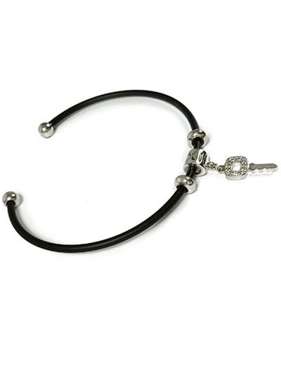 (АРТИКУЛ: 8975/52) БРАСЛЕТ ЖЕНСКИЙ, ЧЕРНЫЙ МАТОВЫЙ МЕТАЛЛ, СЕРЕБРИСТЫЕ ПОДВЕСКИ , МЕЛКИЕ СТРАЗЫ (НА КЛЮЧИКЕ)