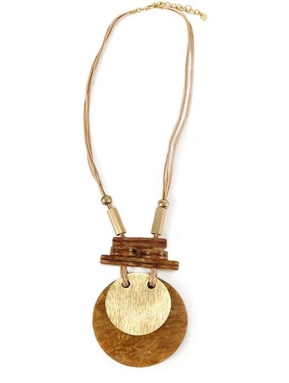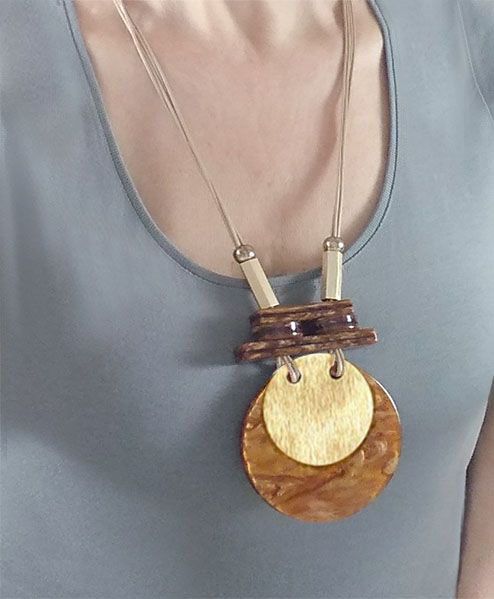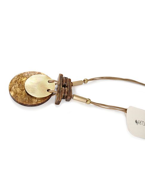 (АРТИКУЛ: 8983/02) КОЛЬЕ ЖЕНСКОЕ, КРУПНАЯ ПОДВЕСКА В БЕЖЕВО-ЗОЛОТИСТЫХ ТОНАХ, ЮВЕЛИРНЫЙ ПЛАСТИК, МЕТАЛЛ