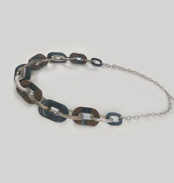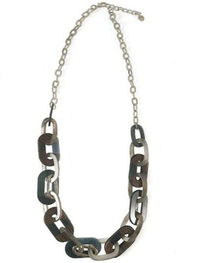 (АРТИКУЛ: 8994/02) КОЛЬЕ ЖЕНСКОЕ, КРУПНАЯ ЦЕПОЧКА В СЕРО-ЗЕЛЕНЫХ ТОНАХ, ЮВЕЛИРНЫЙ ПЛАСТИК, СЕРЕБРИСТЫЙ МЕТАЛЛ