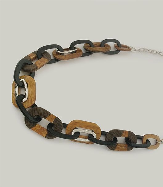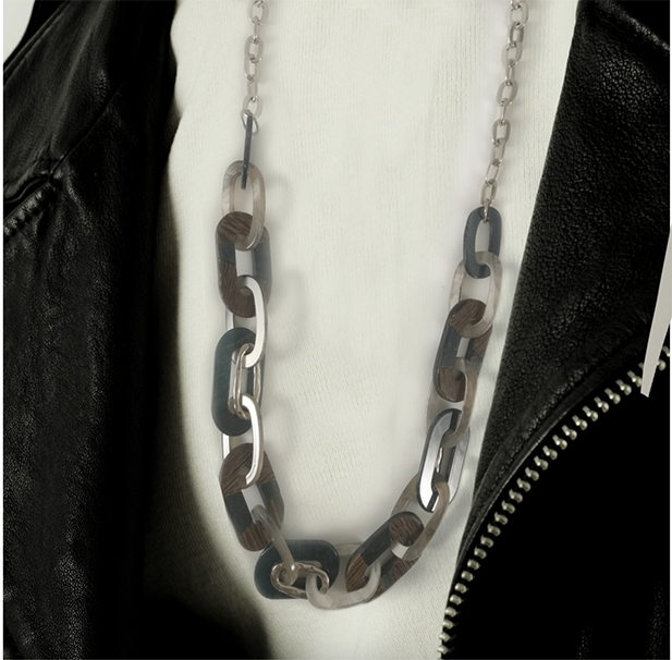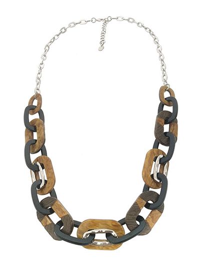 (АРТИКУЛ: 9005/02) КОЛЬЕ ЖЕНСКОЕ, КРУПНАЯ ЦЕПОЧКА В КОРИЧНЕВО-ЧЕРНЫХ ТОНАХ, ЮВЕЛИРНЫЙ ПЛАСТИК, СЕРЕБРИСТЫЙ МЕТАЛЛ
