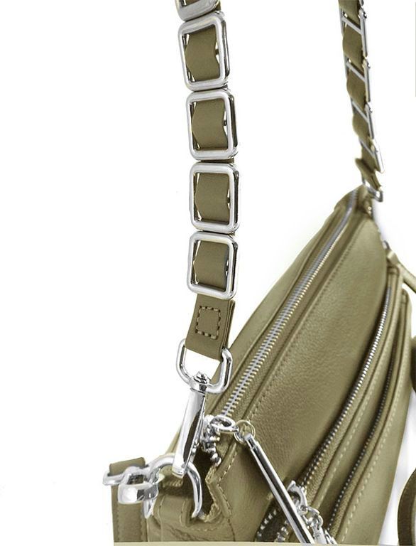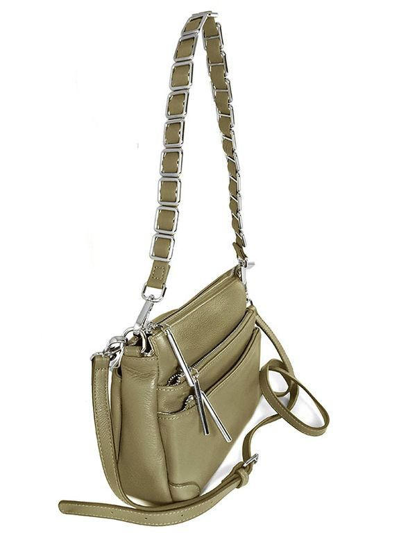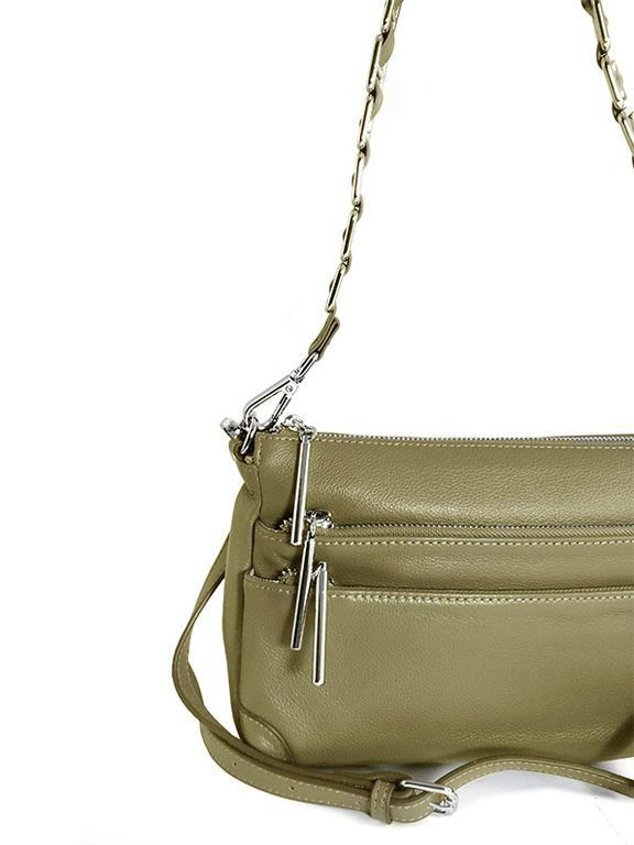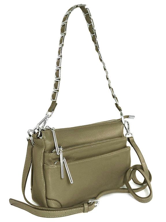 (АРТИКУЛ: 9106/1/22) СУМКА ЖЕНСКАЯ МАЛЕНЬКАЯ, КОЖАНАЯ, С ТРЕМЯ НАРУЖНЫМИ КАРМАНАМИ, ОЛИВКОВАЯ, ДВА РЕМНЯ ЧЕРЕЗ ПЛЕЧО