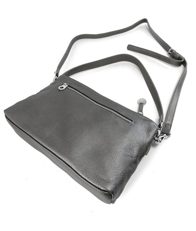 (АРТИКУЛ: 9224/1/22) СУМКА ЖЕНСКАЯ, НЕБОЛЬШАЯ, НАТУРАЛЬНАЯ КОЖА, СЕРАЯ С НЕБОЛЬШИМ БЛЕСКОМ "ГРАФИТОВАЯ", ДВА ОТДЕЛЕНИЯ, С ДВУМЯ ПЛЕЧЕВЫМИ РЕМНЯМИ