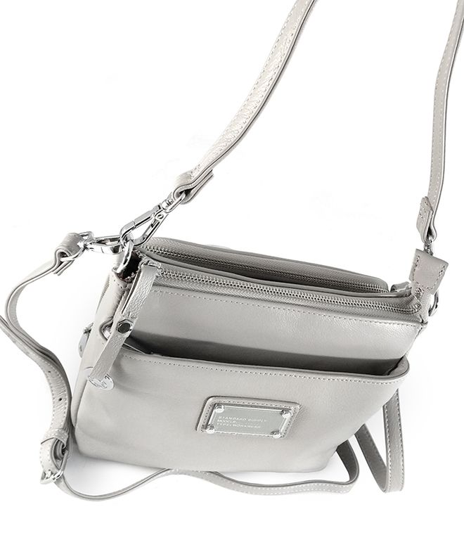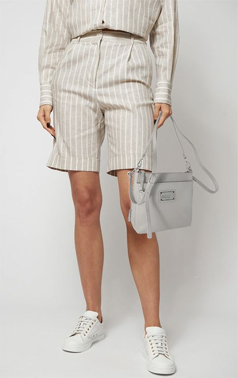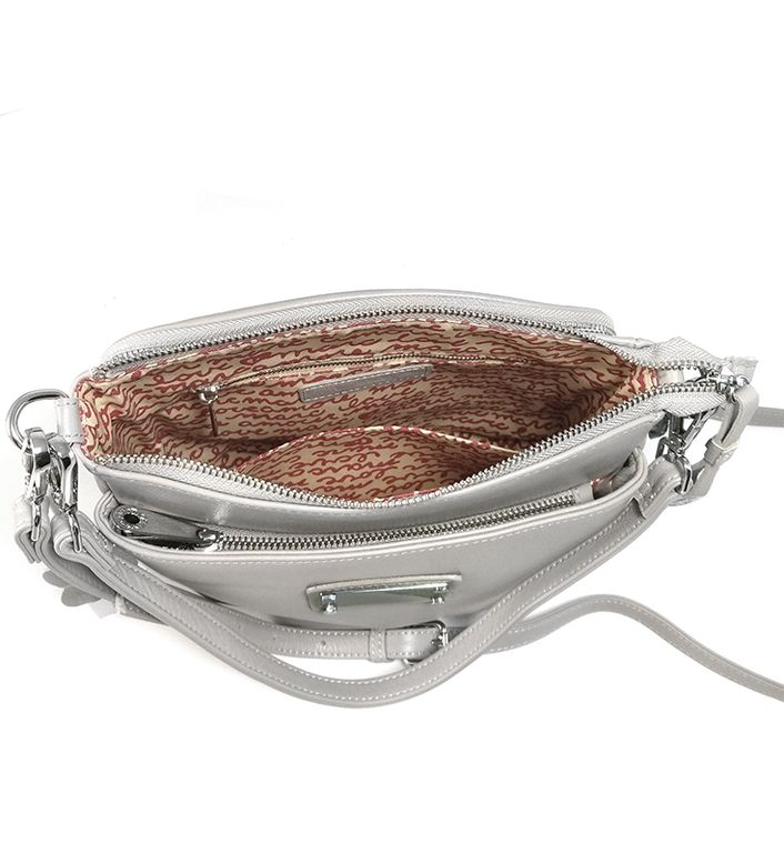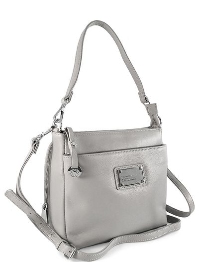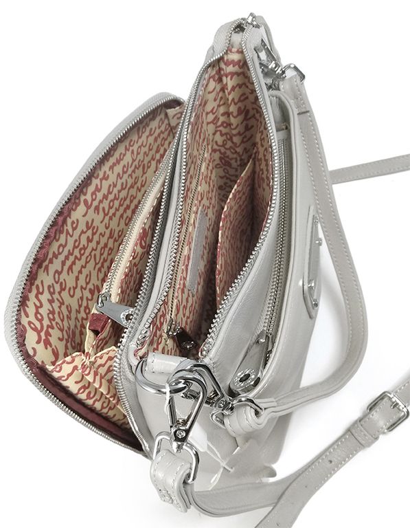 (АРТИКУЛ: 9235/0/42) СУМКА ЖЕНСКАЯ НЕБОЛЬШАЯ, НАТУРАЛЬНАЯ КОЖА, СВЕТЛО-СЕРАЯ, ТРИ ОТДЕЛЕНИЯ, С ДВУМЯ РЕМНЯМИ