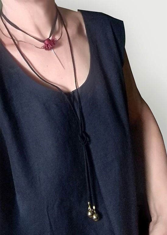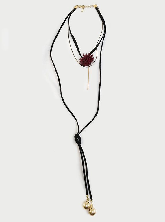 (АРТИКУЛ: 9250/50) УКРАШЕНИЕ ЖЕНСКОЕ, ДЛИННОЕ, ТРЕХЪЯРУСНОЕ, ЧЕРНОЕ С БРОНЗОВОЙ ЦЕПОЧКОЙ, С БОРДОВОЙ ПОДВЕСКОЙ, С ДВУМЯ ЗОЛОТЫМИ БУСИНАМИ