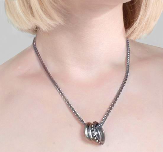 (АРТИКУЛ: 9259/01) КОЛЬЕ КОРОТКОЕ, ПОДВЕСКИ-КОЛЬЦА НА ЦЕПОЧКЕ, МЕТАЛЛ , ЦВЕТ "ЧЕРНЕНОЕ СЕРЕБРО"