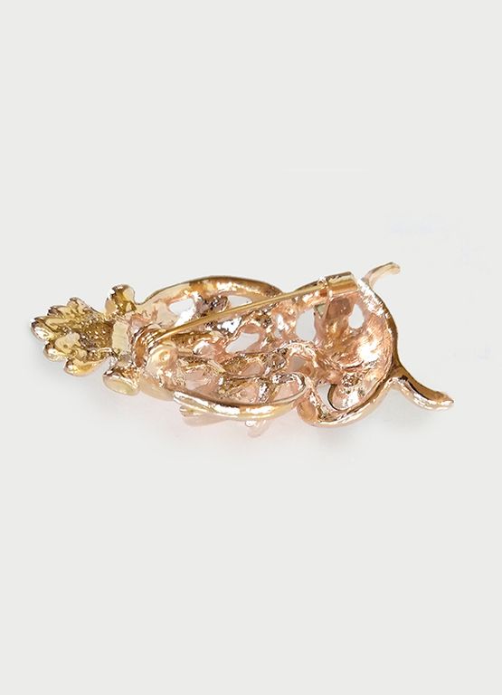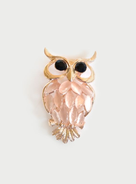 (АРТИКУЛ: 9295/80) БРОШКА ЖЕНСКАЯ "СОВА", НЕБОЛЬШАЯ, ЗОЛОТИСТЫЙ МЕТАЛЛ, НЕЖНО-РОЗОВЫЕ КРИСТАЛЛЫ