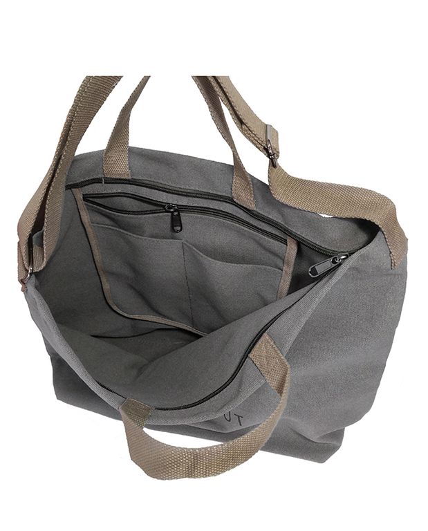 (АРТИКУЛ: 9317/1) СУМКА БОЛЬШАЯ, ТЕКСТИЛЬ, СЕРАЯ, НА МОЛНИИ, С ПЛЕЧЕВЫМ РЕМНЕМ