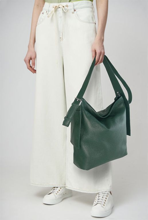 (АРТИКУЛ: 9511/92) СУМКА ЖЕНСКАЯ СРЕДНЕГО РАЗМЕРА, НАТУРАЛЬНАЯ КОЖА, ЗЕЛЕНАЯ "БУТЫЛОЧНОЕ СТЕКЛО", ДВА РЕМНЯ ЧЕРЕЗ ПЛЕЧО