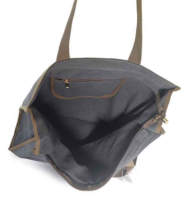 (АРТИКУЛ: 9640) СУМКА БОЛЬШАЯ, ТЕКСТИЛЬ, СЕРАЯ С ТЕМНО-БЕЖЕВЫМИ РУЧКАМИ ЧЕРЕЗ ПЛЕЧО