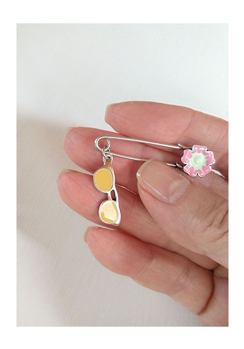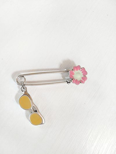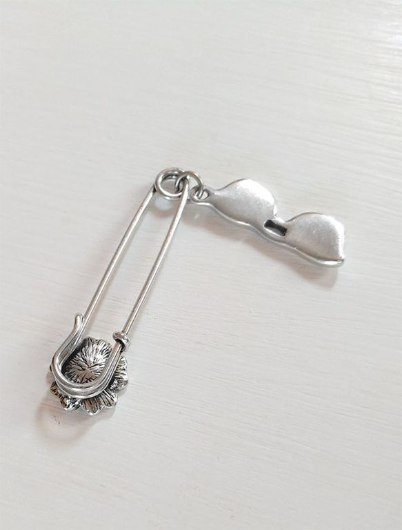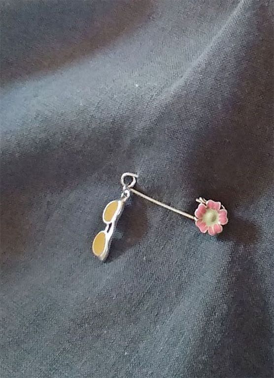 (АРТИКУЛ: 9664/50) БРОШКА БУЛАВКА, СРЕДНЕГО РАЗМЕРА, С ПОДВЕСКАМИ ("ОЧКИ", "ЦВЕТОК"), СЕРЕБРИСТЫЙ МЕТАЛЛ, ЭМАЛЬ