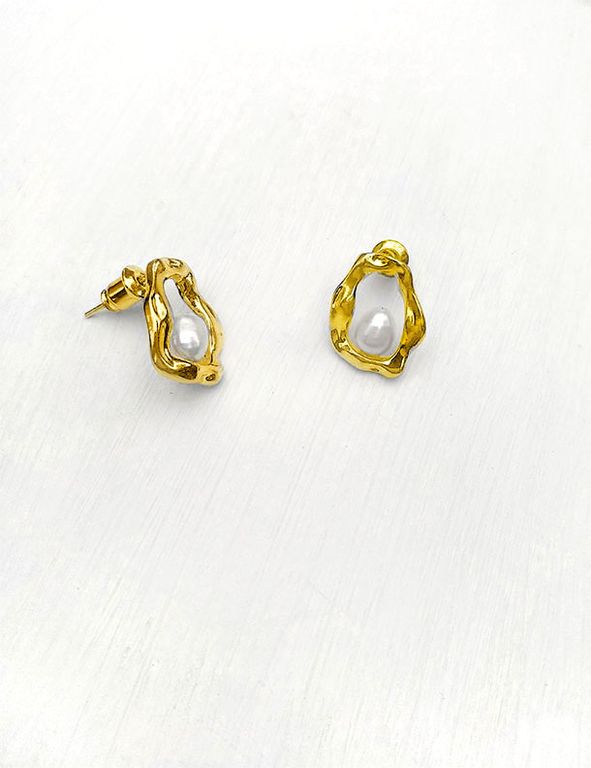 (АРТИКУЛ: 9667/01) СЕРЬГИ ЖЕНСКИЕ, МЕТАЛЛ "ЗОЛОТО", ЖЕМЧУЖНЫЕ ВСТАВКИ