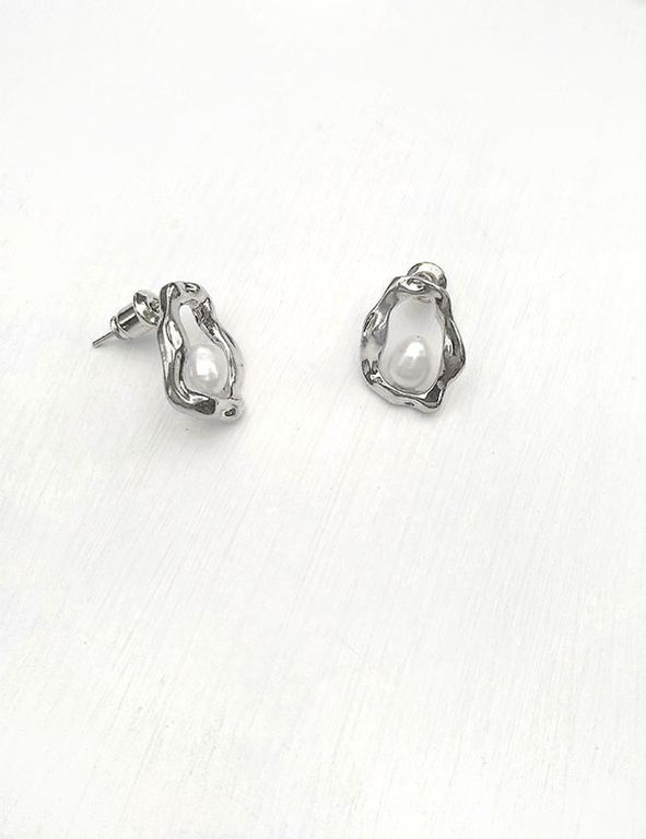(АРТИКУЛ: 9668/01) СЕРЬГИ ЖЕНСКИЕ, СЕРЕБРИСТЫЙ МЕТАЛЛ, ЖЕМЧУЖНЫЕ ВСТАВКИ