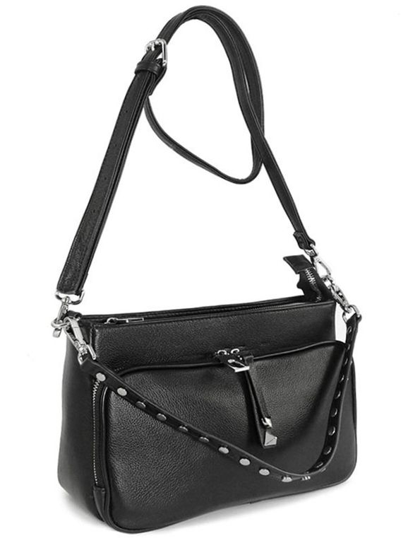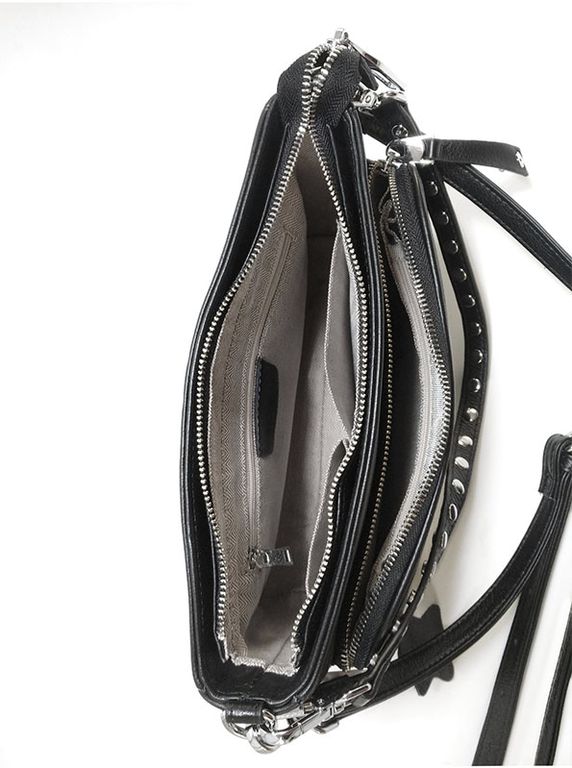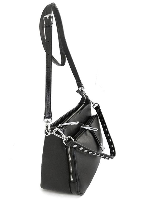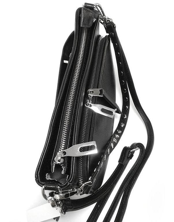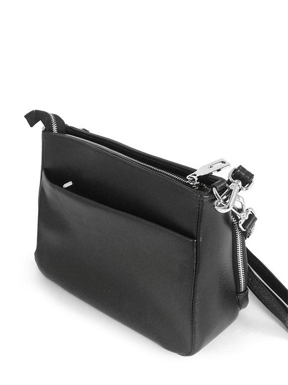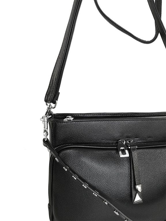 (АРТИКУЛ: 9724/32) СУМКА ЖЕНСКАЯ НЕБОЛЬШАЯ, НАТУРАЛЬНАЯ КОЖА, С ДВУМЯ НАРУЖНЫМИ КАРМАНАМИ, ЧЕРНАЯ, РЕМЕНЬ ЧЕРЕЗ ПЛЕЧО