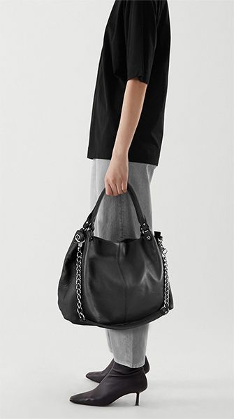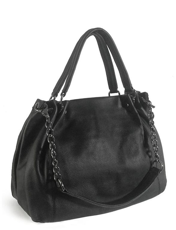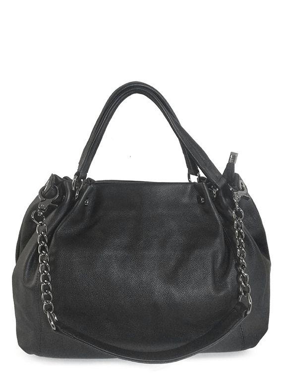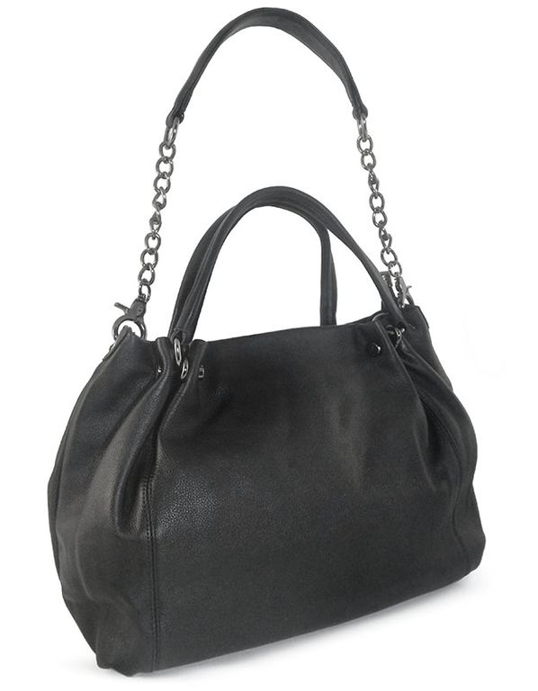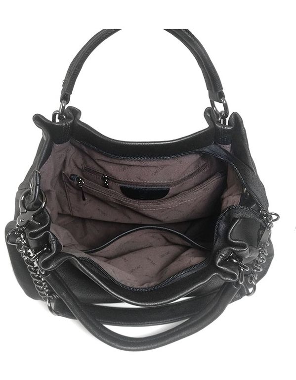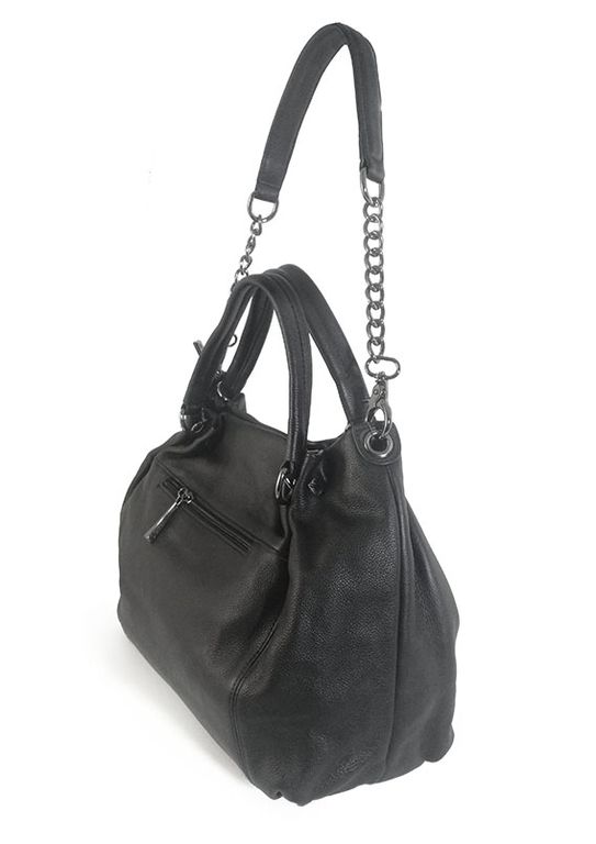 (АРТИКУЛ: 9744/92) СУМКА ЖЕНСКАЯ БОЛЬШАЯ, НАТУРАЛЬНАЯ КОЖА, ЧЕРНАЯ, С ЦЕПОЧКОЙ