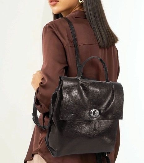 (АРТИКУЛ: 9746/23) ЖЕНСКИЙ РЮКЗАК, СРЕДНЕГО РАЗМЕРА, НАТУРАЛЬНАЯ КОЖА "МЯТЫЙ ЛАК", ТЕМНО-КОРИЧНЕВЫЙ