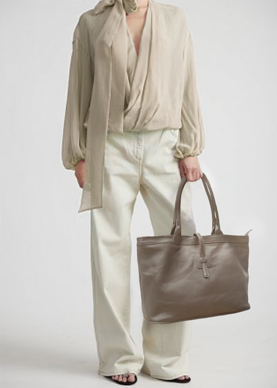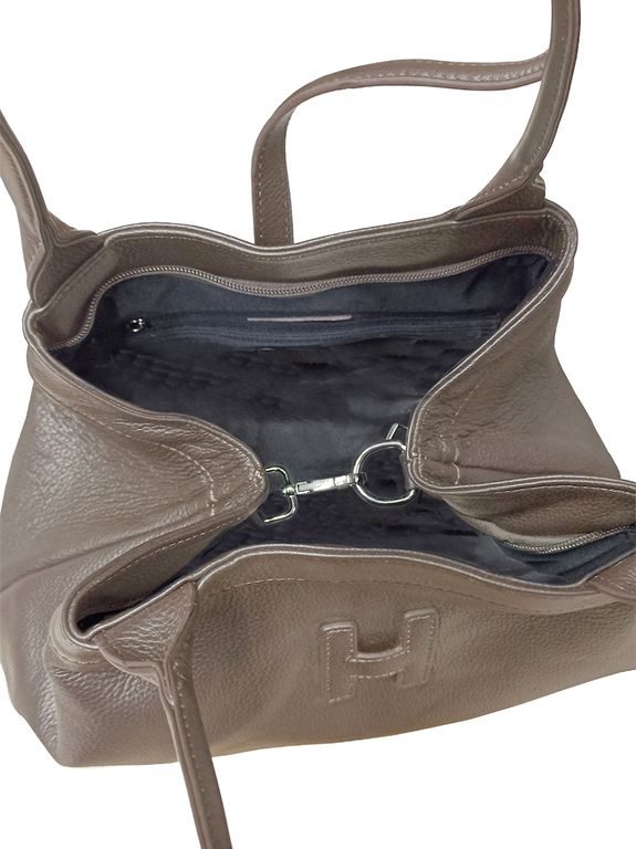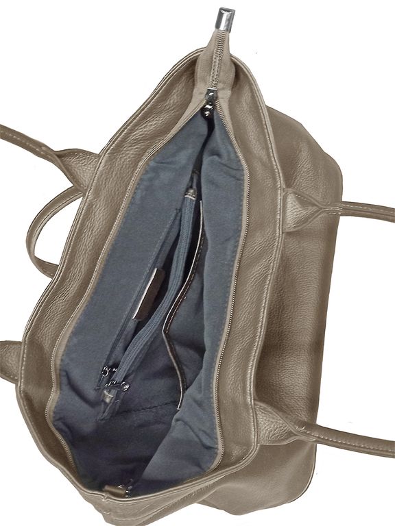 (АРТИКУЛ: 9774/03) СУМКА ЖЕНСКАЯ БОЛЬШАЯ, НАТУРАЛЬНАЯ КОЖА, ТЕМНО-БЕЖЕВАЯ, РУЧКИ И РЕМЕНЬ ЧЕРЕЗ ПЛЕЧО