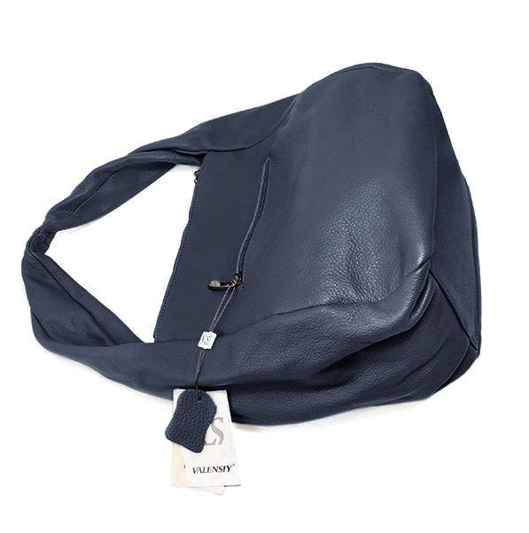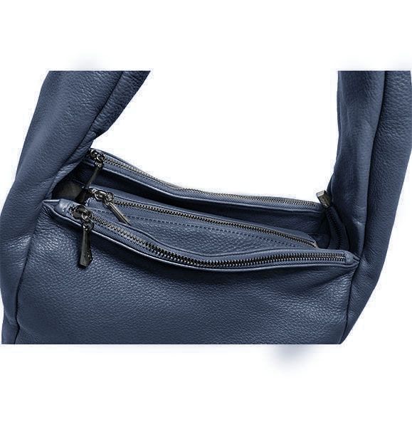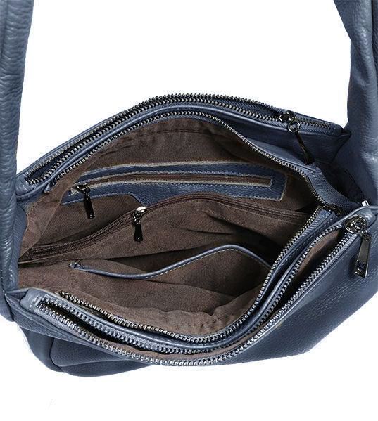 (АРТИКУЛ: 9790) СУМКА-МЕШОК ЖЕНСКАЯ, СРЕДНЕГО РАЗМЕРА, НАТУРАЛЬНАЯ КОЖА, ГРЯЗНО-СИНИЙ, ТРИ ОТДЕЛЕНИЯ НА МОЛНИЯХ, ЧЕРЕЗ ПЛЕЧО