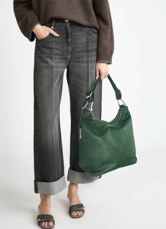 (АРТИКУЛ: 9812/1/82) СУМКА МЕШОК ЖЕНСКАЯ, СРЕДНЕГО РАЗМЕРА, НАТУРАЛЬНАЯ КОЖА, ТЕМНО-ЗЕЛЕНАЯ, ДВА ОТДЕЛЕНИЯ, РУЧКА И РЕМЕНЬ ЧЕРЕЗ ПЛЕЧО