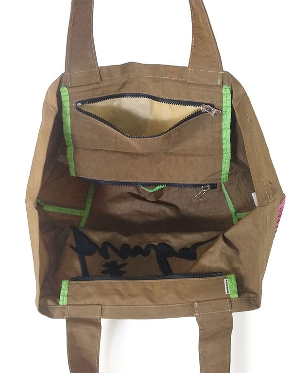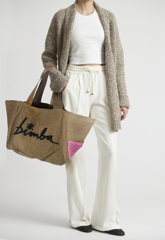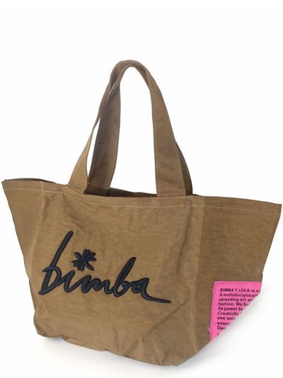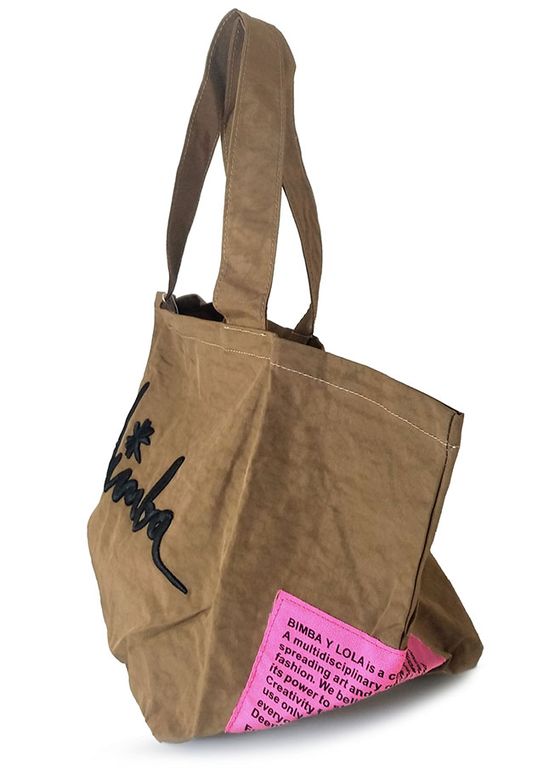 (АРТИКУЛ: 9852/2) СУМКА БОЛЬШАЯ, ТЕКСТИЛЬ, ЦВЕТ "МОКРЫЙ ПЕСОК" С ЧЕРНЫМИ БУКВАМИ И РОЗОВОЙ АППЛИКАЦИЕЙ, С РУЧКАМИ ЧЕРЕЗ ПЛЕЧО