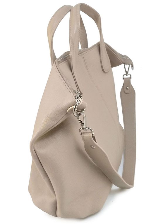 (АРТИКУЛ: 9854/0/8) СУМКА ЖЕНСКАЯ, БОЛЬШАЯ, НАТУРАЛЬНАЯ КОЖА, БЕЖЕВАЯ, С ШИРОКИМ ПЛЕЧЕВЫМ РЕМНЕМ