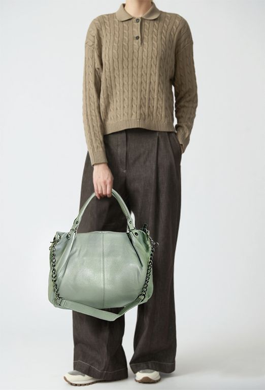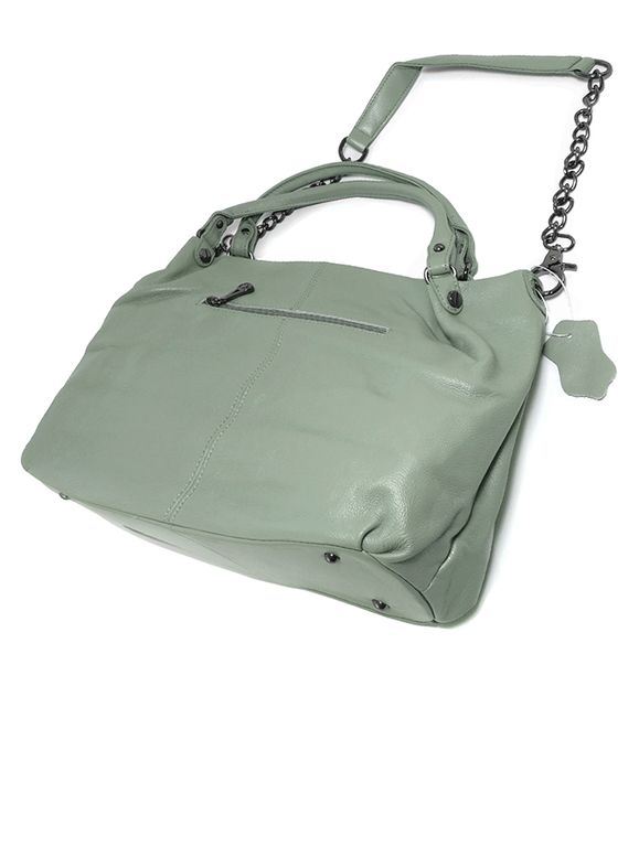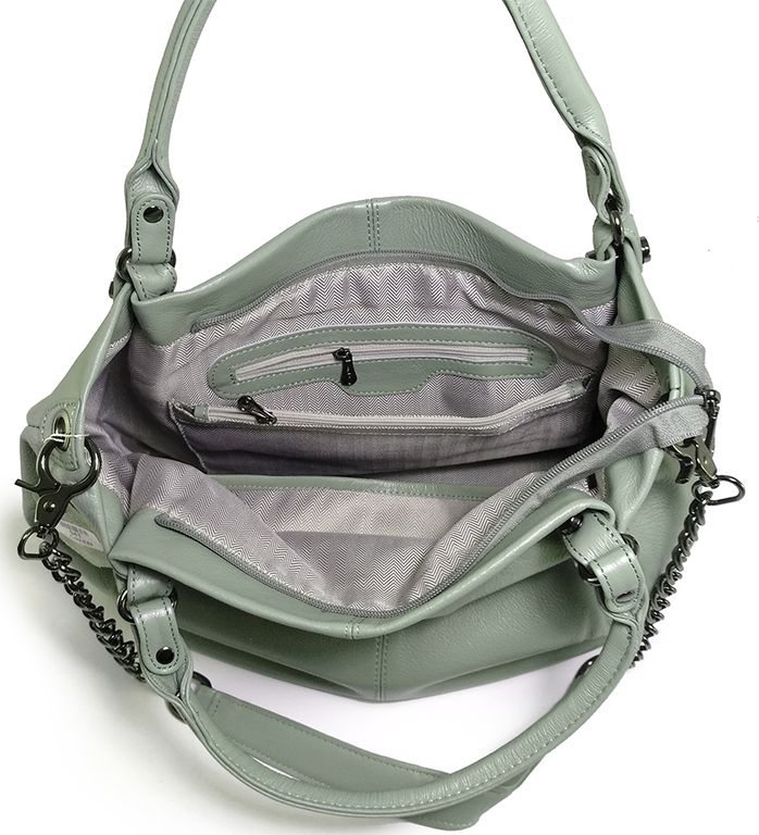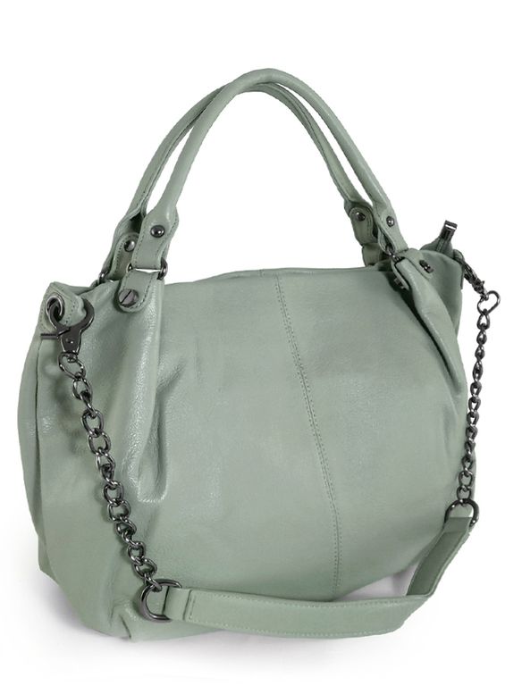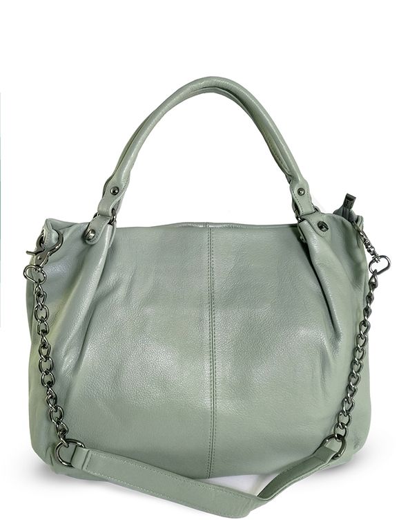 (АРТИКУЛ: 9904/1/8) СУМКА ЖЕНСКАЯ БОЛЬШАЯ, НАТУРАЛЬНАЯ КОЖА, БЛЕДНО-ЗЕЛЕНАЯ, РЕМЕНЬ С ЦЕПОЧКОЙ ЧЕРЕЗ ПЛЕЧО