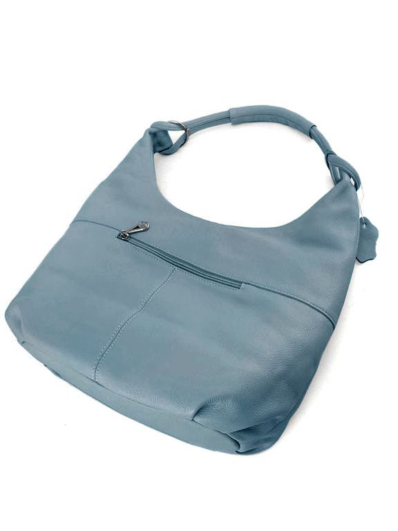 (АРТИКУЛ: 9905/7) СУМКА МЕШОК, БОЛЬШАЯ, НАТУРАЛЬНАЯ КОЖА, ГОЛУБАЯ, ЧЕРЕЗ ПЛЕЧО