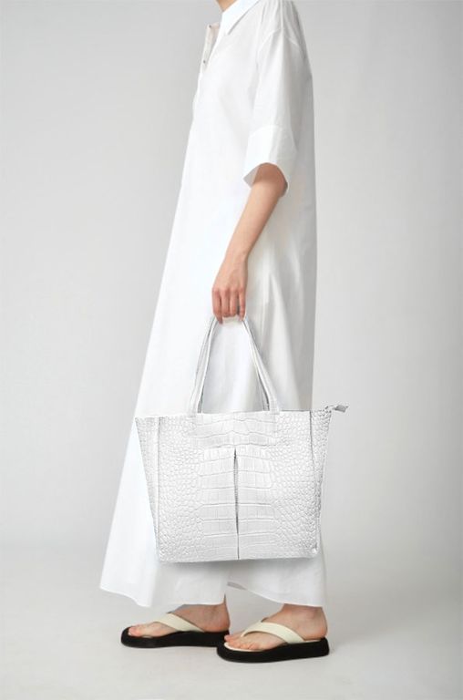 (АРТИКУЛ: 9936/0/6) СУМКА ЖЕНСКАЯ БОЛЬШАЯ, НАТУРАЛЬНАЯ КОЖА, БЕЛАЯ, СПЕРЕДИ ДВА НАКЛАДНЫХ КАРМАНА, РУЧКИ ЧЕРЕЗ ПЛЕЧО