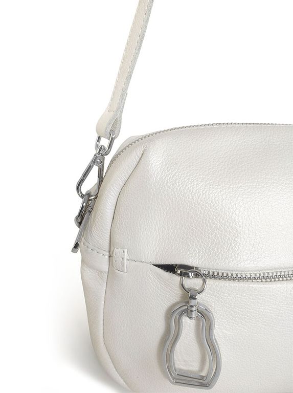 (АРТИКУЛ: 9945/8) СУМКА ЖЕНСКАЯ, НЕБОЛЬШАЯ, НАТУРАЛЬНАЯ КОЖА, БЕЛАЯ "МОЛОЧНАЯ" С ЕДВА ЗАМЕТНЫМ ПЕРАМУТРОВЫМ БЛЕСКОМ, С ПЛЕЧЕВЫМ РЕМНЕМ
